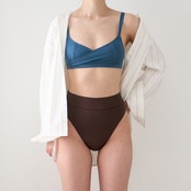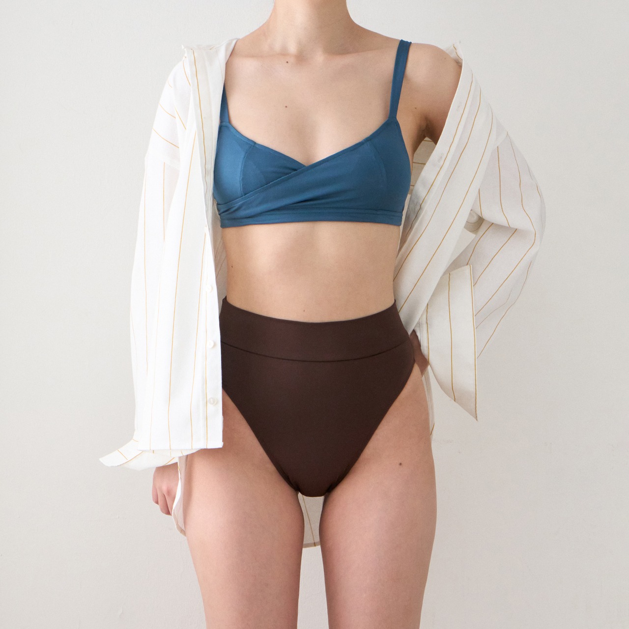 Wrap TOP は、身体のラインにやさしく沿う、ラップ風デザインのスイムトップス。